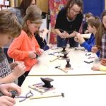 L’atelier Les apprentis joailliers en est un de découverte et d’initiation à la fabrication de bijoux en métal. Fils et feuilles de cuivre ou de laiton se transforment sous l’intervention des élèves, les possibilités sont infinies. Le type de bijoux et les techniques exploitées varient en fonction du niveau scolaire et de la durée de l’atelier.