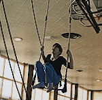 Après s’être séparés en trois groupes, les élèves forment trois cercles et, à partir de la musique qui est jouée, chaque enfant choisit un animal. L’artiste se déplace d’un groupe à l’autre, incitant les jeunes à se mettre dans la peau de leur animal en s’étirant, en se roulant et en se déplaçant dans le gymnase. Une fois cet exercice terminé, les enfants se rassemblent autour des trapèzes (trois trapèzes sont nécessaires à l’activité) et imitent un à un les mouvements montrés par l’artiste, tout en gardant l’attitude de l’animal choisi. De cette façon, ils apprivoisent l’espace en musique. Ils apprennent à se mouvoir au sol grâce à l’acrobatie et à la danse, et dans l’espace grâce au trapèze. Cet atelier développe le rythme et aide à apprivoiser l’espace.